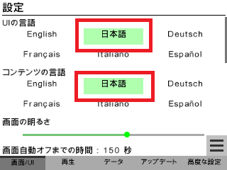 - 「UI Language」 をタップして「Japanese(日本語)」に変更。