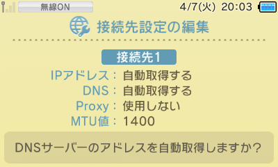 - 「ニンテンドーネットワークに接続します」という旨のメッセージが出ますが、そのまま進めてください。