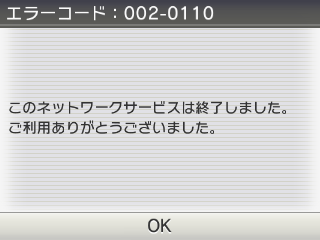 現在、ゲーム内から「ダウンロード」を選択しても、サービス終了のメッセージが表示されるか、接続エラー(エラーコード:002-0102など)が発生する状態となっています。