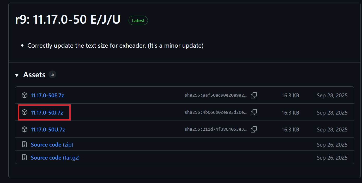 「Releases」から、自分の本体のリージョン(日本なら J)に合ったZIPファイルをダウンロードし、解凍しておきます。