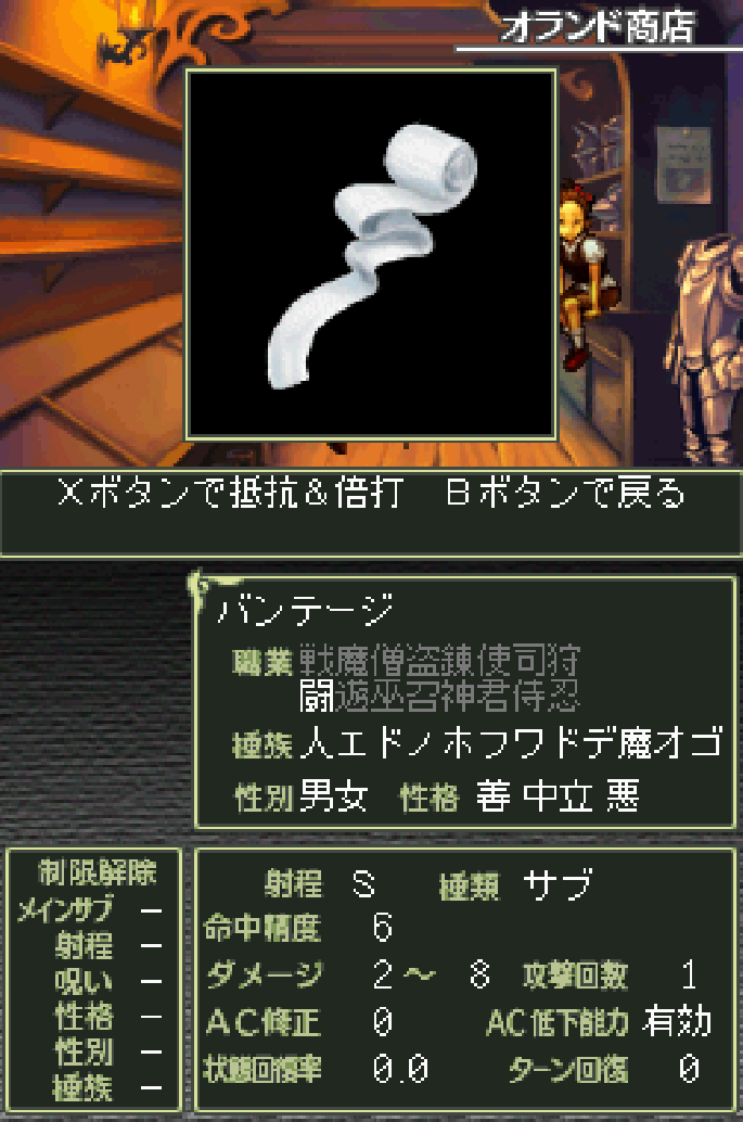 バンテージはサブ武器扱いのため、闘士に両手装備させることが可能です。