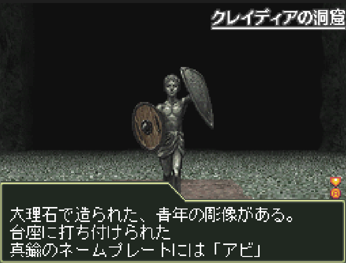 クレイディアの洞窟 X03 Y08 にいる「アビ」は、 話しかけるたびに何度でも戦闘可能な固定敵です。