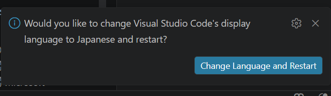 インストール完了後、右下に「Change Language and Restart」というポップアップが表示された場合は、それをクリックすると自動で再起動し、日本語化が完了します。