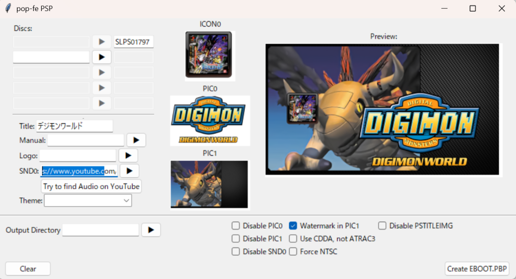 数十秒ほどで変換が完了し、出力ディレクトリに変換された「EBOOT.PBP」を含むフォルダが生成されます。